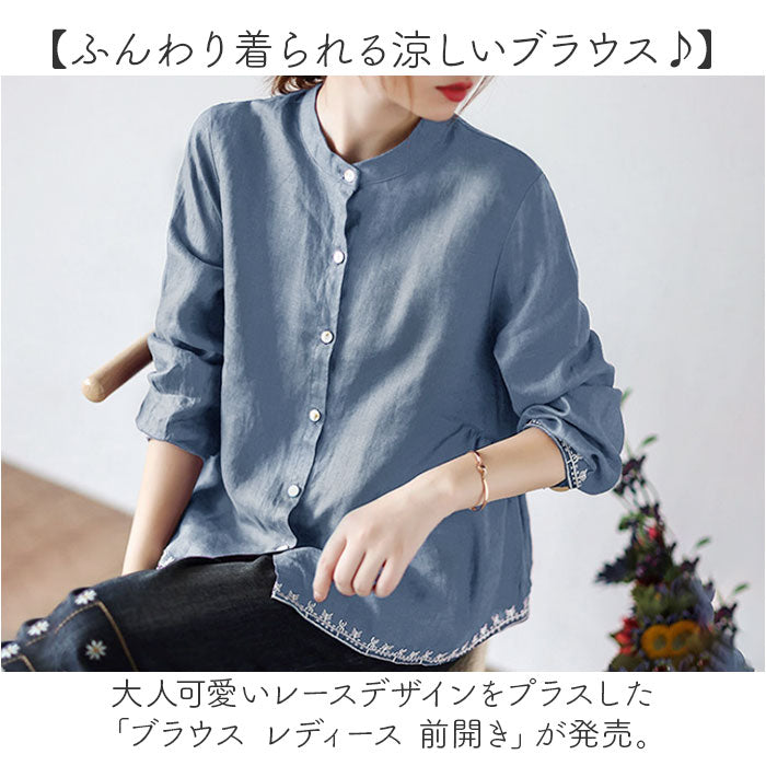 ・大人可愛いレースデザインをプラスした「ブラウス レディース 前開き」が発売。