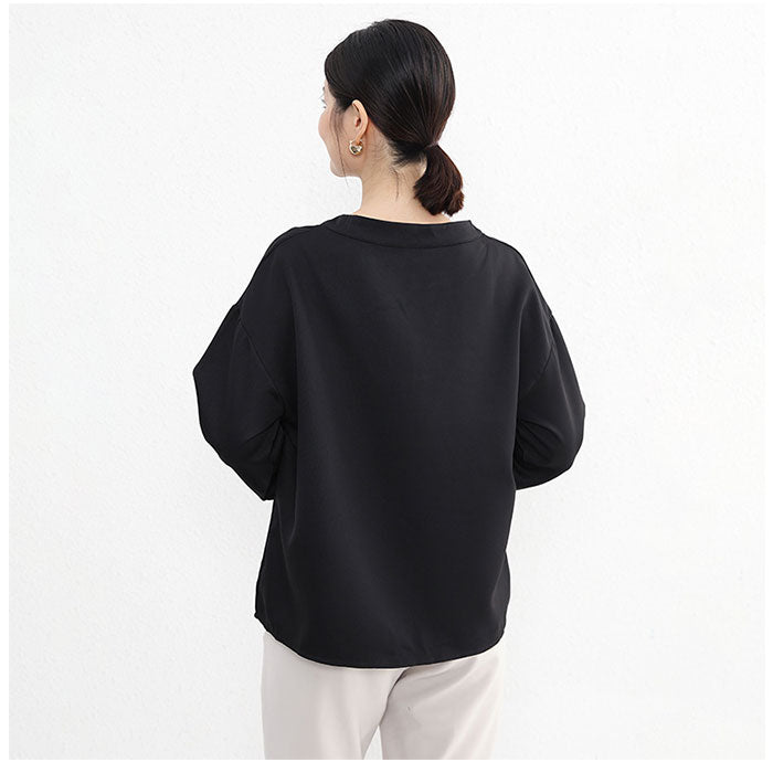 ブラウス レディース 通販 キーネックブラウス シャツ パール付 Vネック 長袖 キーネック 無地 おしゃれ デザイン 春 秋 上品 トップス 通勤 通学