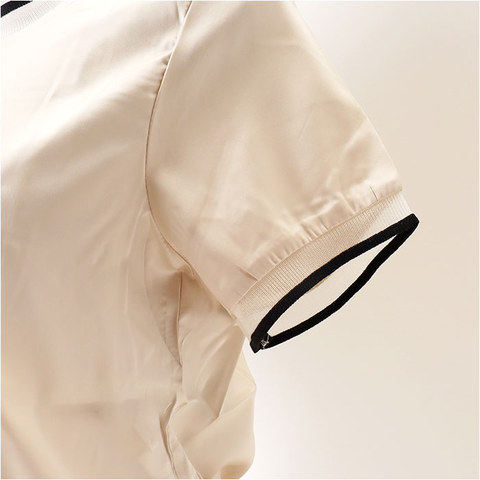 ・肌馴染みの良いカラー展開。襟元や袖口に異素材をプラスし、ちょっとしたアクセントに。