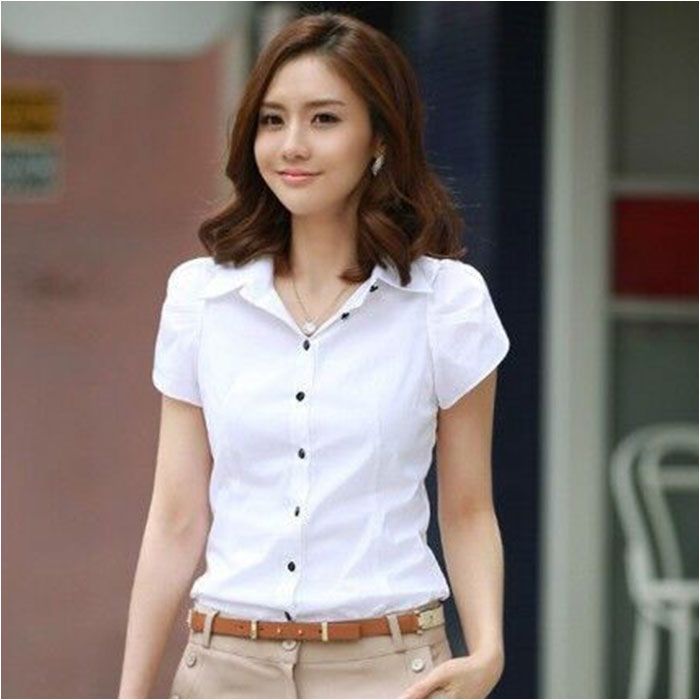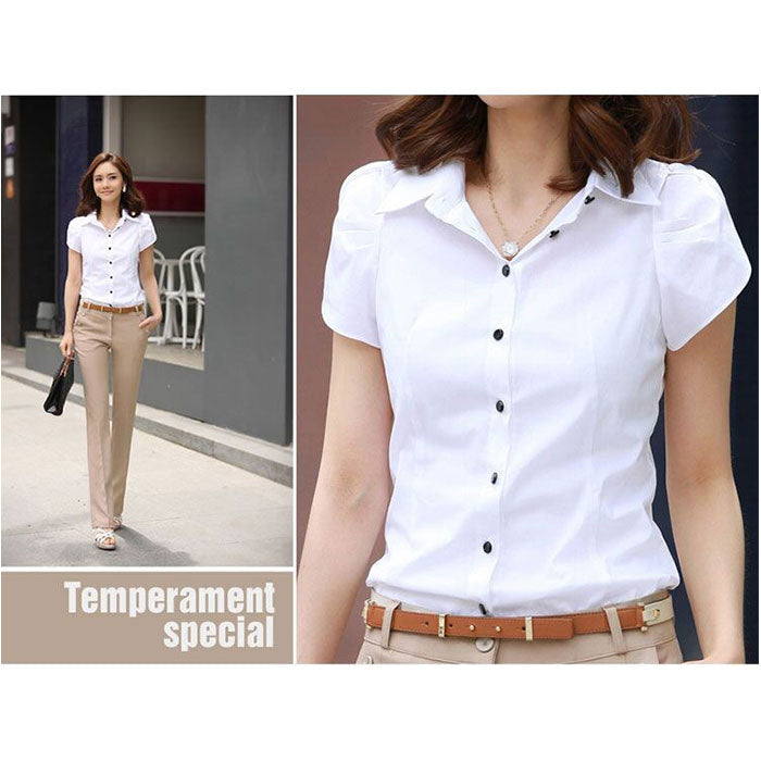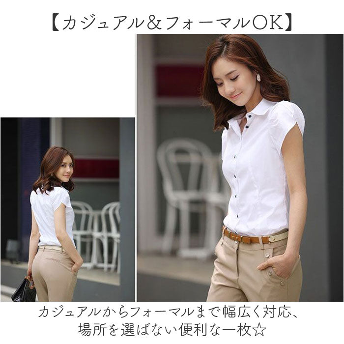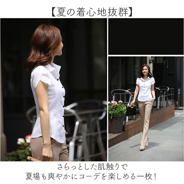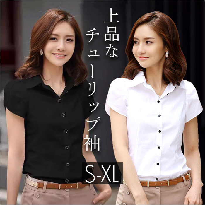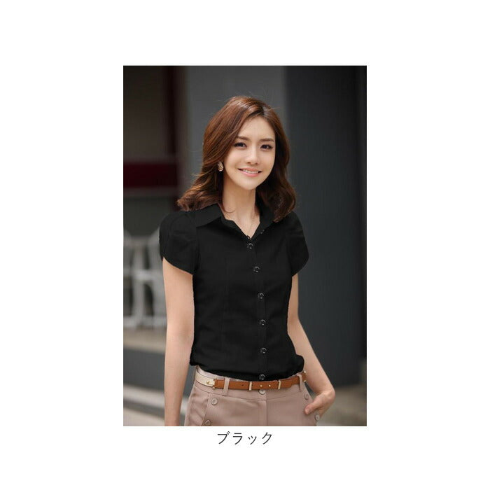 ブラウス 半袖 レディース 通販 シャツブラウス 半袖ブラウス シャツ 半袖シャツ ワイシャツ Yシャツ 制服 襟付き 衿付き チューリップ袖 パフスリーブ きれいめ カジュアル ビジネス