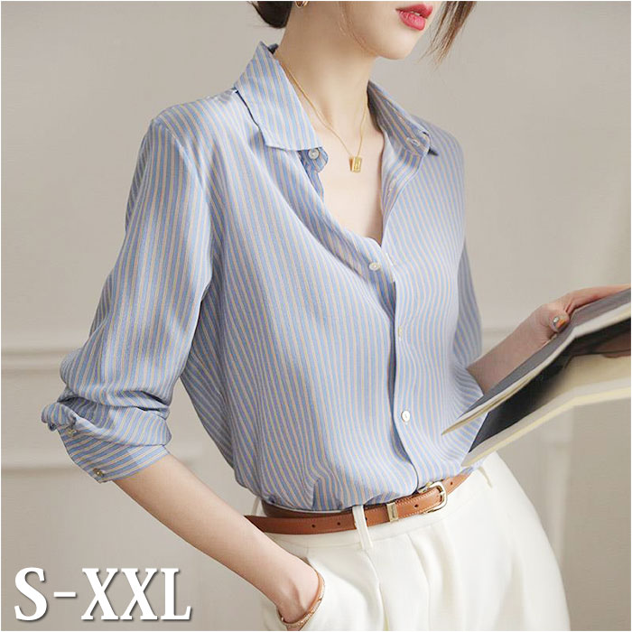 ブラウス 長袖 レディース オフィス 通販 ストライプ シャツブラウス 襟付き ストライプシャツ フォーマル ワイシャツ ビジネス きれいめ おしゃれ 上品 通勤 かわいい
