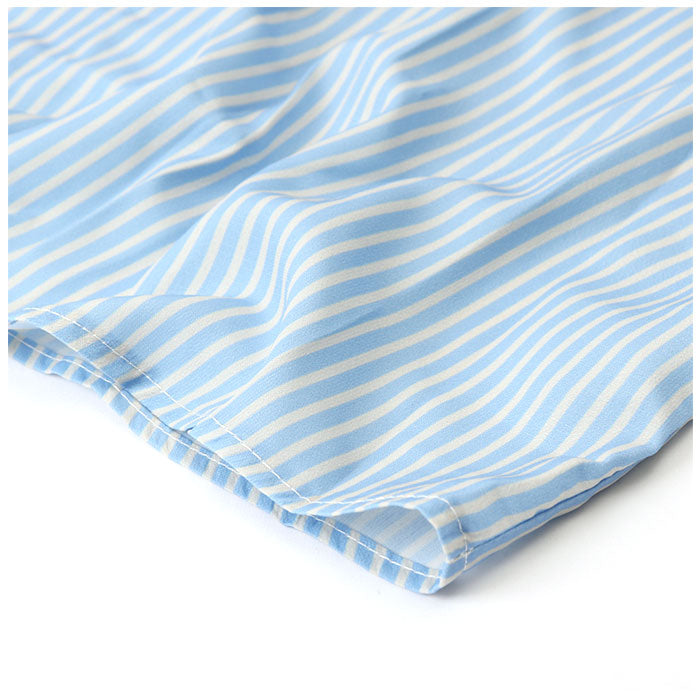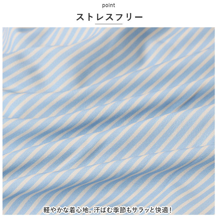・ちょっとキレイめなパンツとも相性ばっちりなスタンダードデザイン。爽やかな色合いのストライプ柄で、春夏コーデにぴったり♪