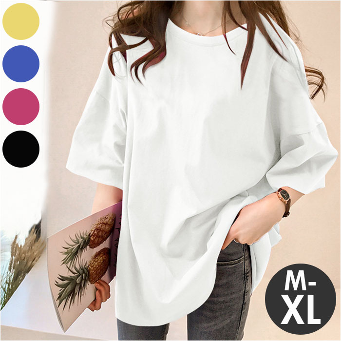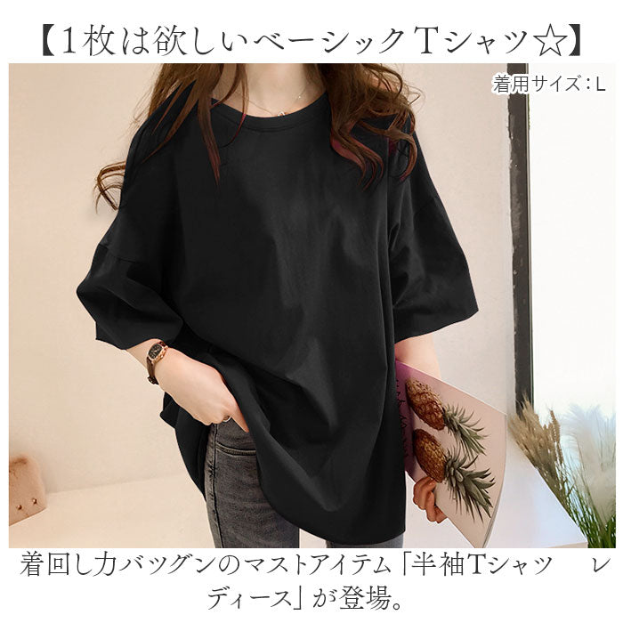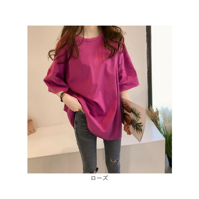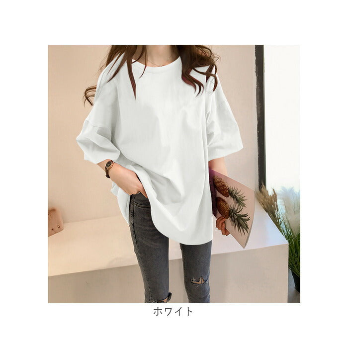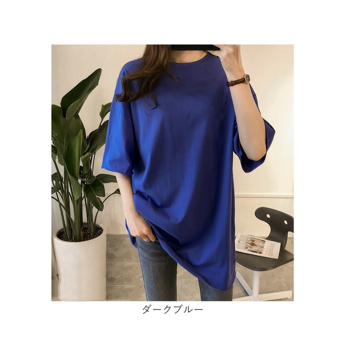 ブラウス 長袖 レディース 半袖 通販 tシャツ Tシャツ 半袖シャツ 半袖Tシャツ 半袖tシャツ シャツ カットソー ラウンドネック ロング丈 ロング 体型カバー ゆったり 無地 カジュアル 春