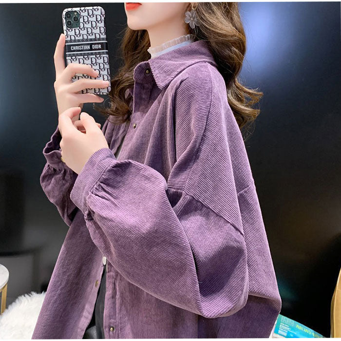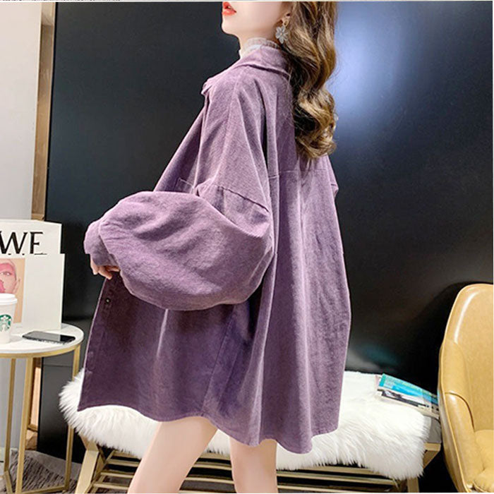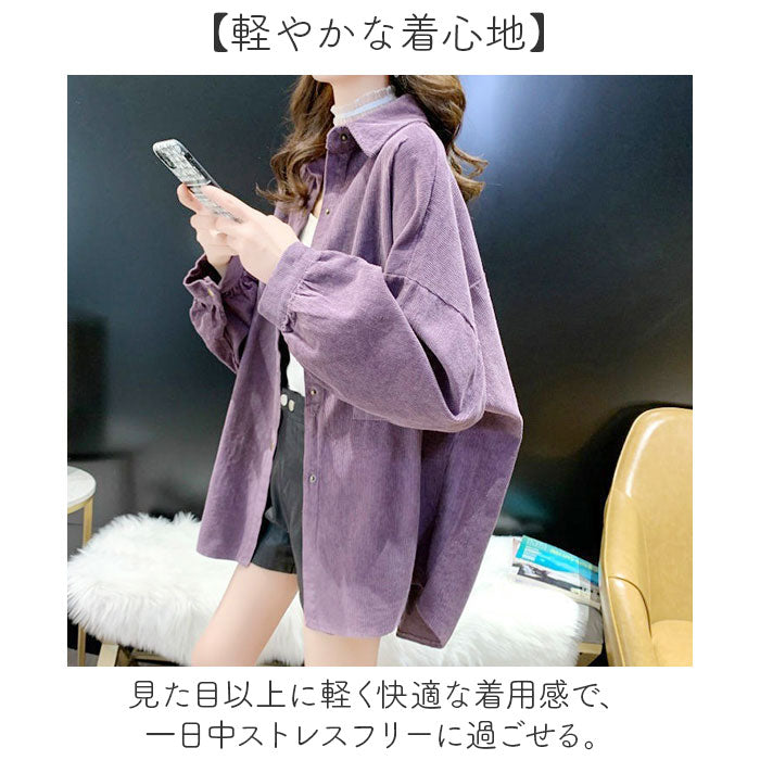 ブラウス 長袖 レディース 通販 コーデュロイブラウス シャツ オーバーサイズ 無地 トップス 羽織り カジュアルシャツ 厚手 長袖トップス おしゃれ 襟付き ゆったり かわいい 大人 可愛い