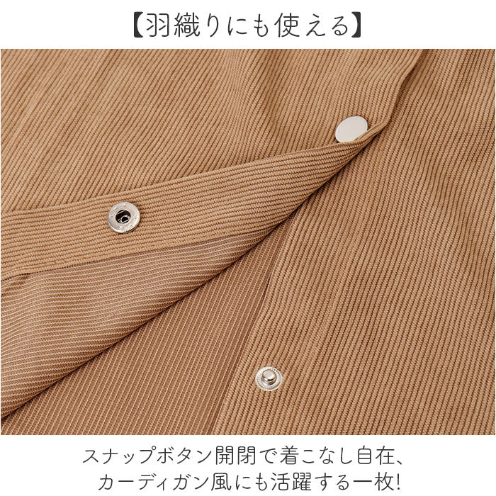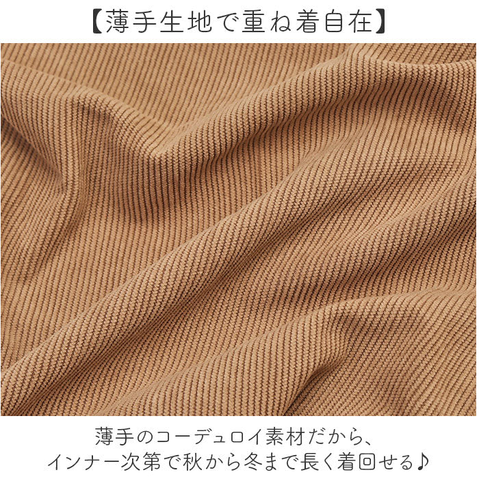 ・薄手のコーデュロイ素材だから、インナー次第で秋から冬まで長く着回せる♪