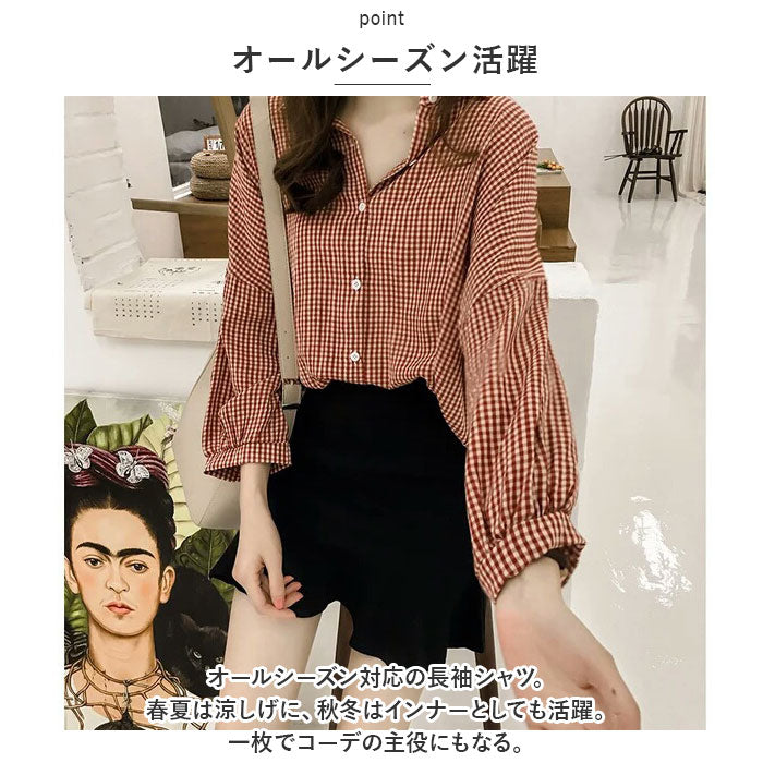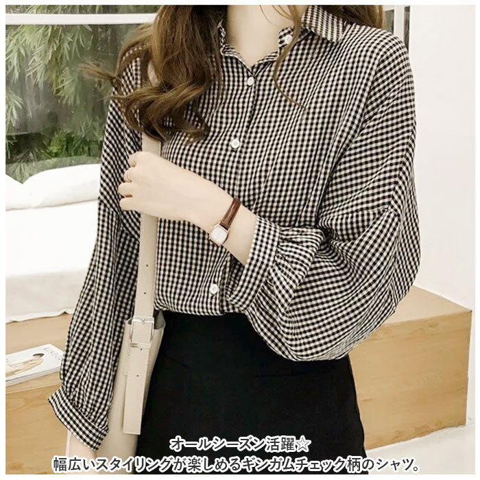 ・オールシーズン活躍☆幅広いスタイリングが楽しめるギンガムチェック柄のシャツ。