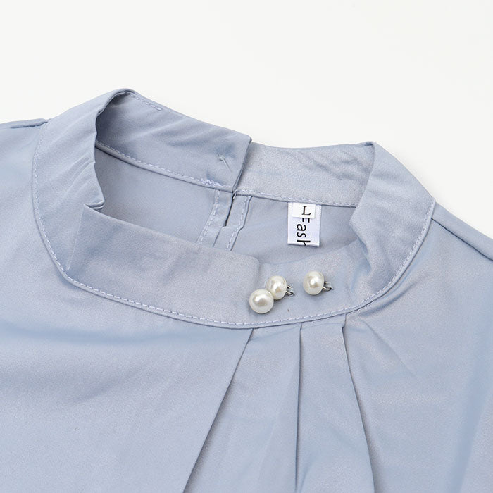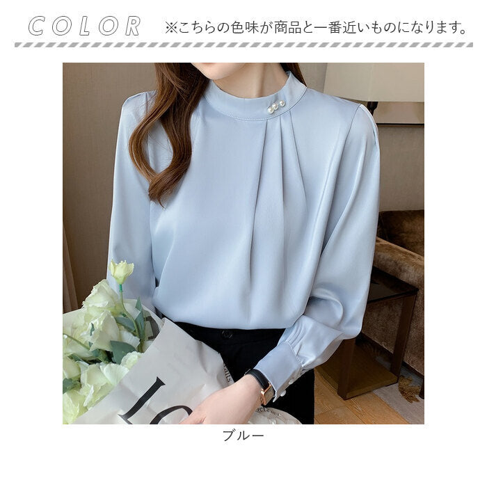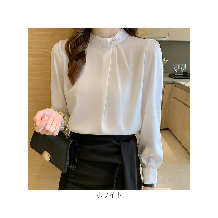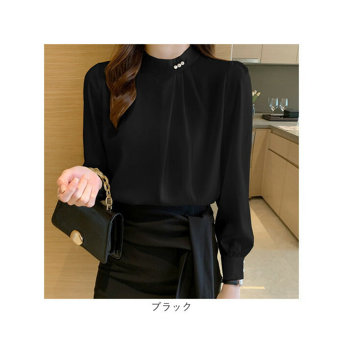 ブラウス 長袖 秋冬 レディース きれいめ 通販 シャツブラウス シャツ トップス プルオーバー おしゃれ オシャレ オフィス フォーマル スーツ インナー ハイネック 襟なし ウエーブタック