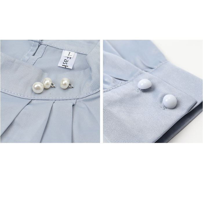 ・首元と袖口にパールライクの輝きを☆着るだけで華やかに仕上がり、アクセサリーいらず!