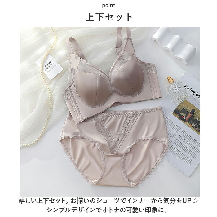 ・嬉しい上下セット。お揃いのショーツでインナーから気分をUP☆シンプルデザインでオトナの可愛い印象に。
