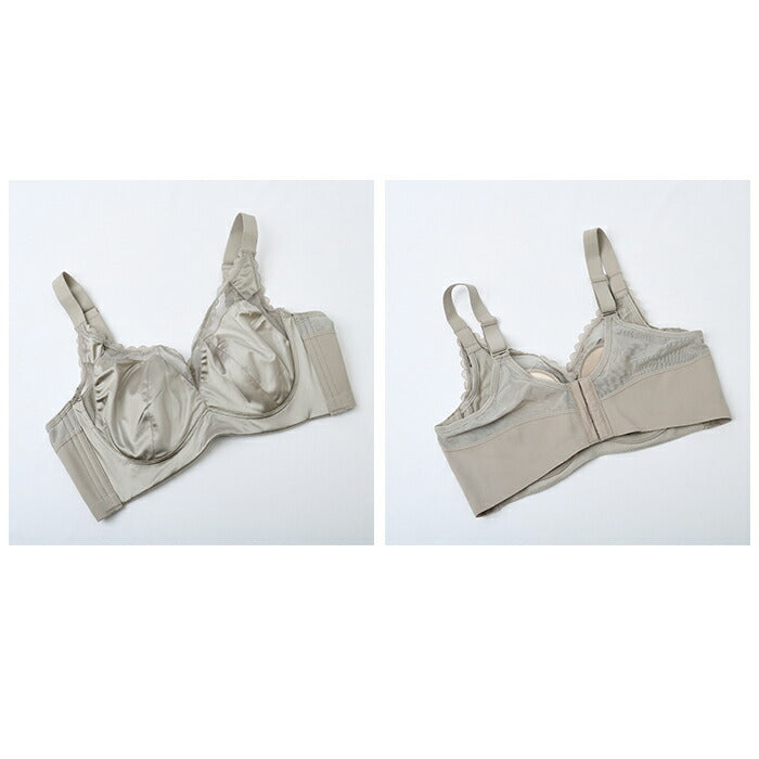 ・大きいバストを小さくスッキリ魅せるブラ。左右一体型の立体カップでバストの突出感を徹底的に抑え、スッキリしたバストラインをメイク!