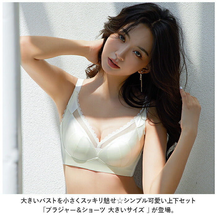 ・大きいバストを小さくスッキリ魅せ☆シンプル可愛い上下セット「ブラジャー&ショーツ 大きいサイズ 」が登場。