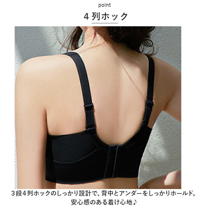 3段4列ホックのしっかり設計で、背中とアンダーをしっかりホールド。安心感のある着け心地♪