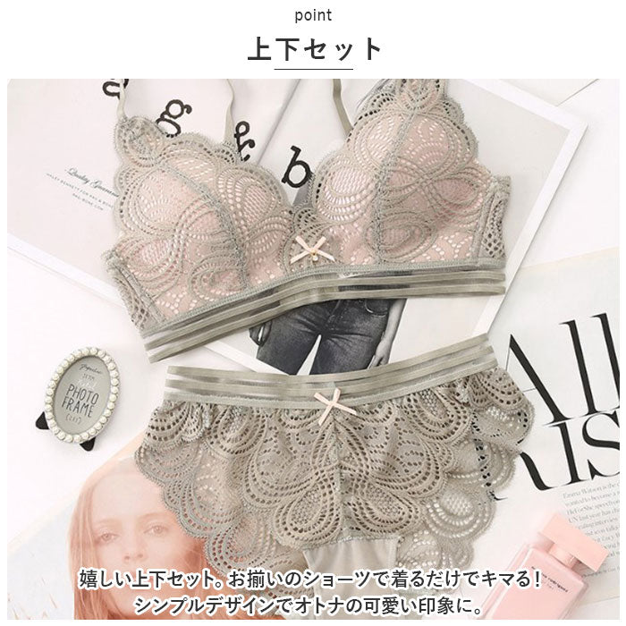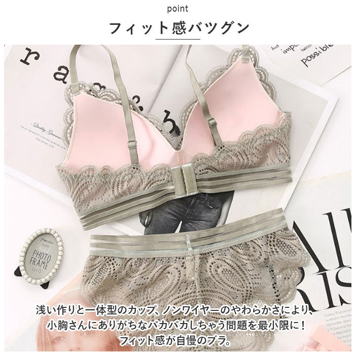 ブラジャー ショーツ セット 通販 ブラショーツ ブラセット ブラショーツセット ナイトブラ ノンワイヤーブラ ブラ 上下 セット 上下セット ストラップ 取り外し可能 3/4カップ レース