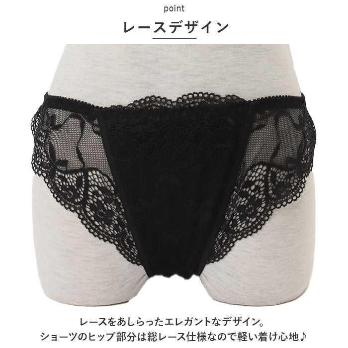 ・レースをあしらったエレガントなデザイン。バックベルトとショーツのヒップ部分は総レース仕様なので軽い着け心地♪
