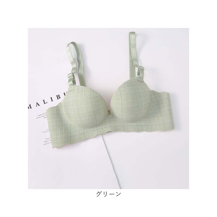 ブラジャー チェック柄 ノンワイヤー 通販 ノンワイヤーブラジャー シームレスブラジャー ノンワイヤーブラ シームレス 楽 格子柄 調節可能 肌に優しい チェック おしゃれ やわらかい