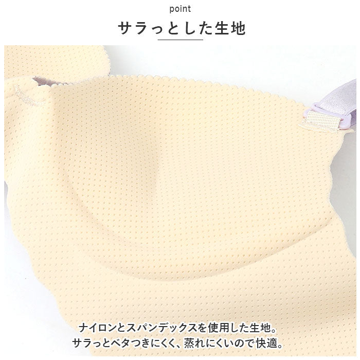 ・ノンワイヤーなので痛くなりにくい、楽な着け心地。胸を締め付け過ぎず、長時間の着用もOK。