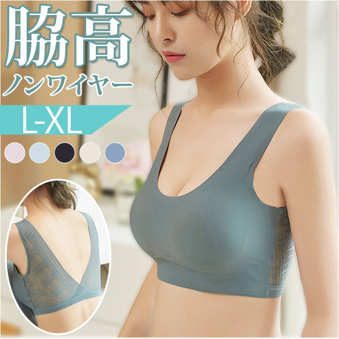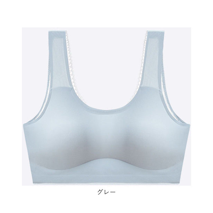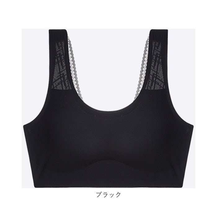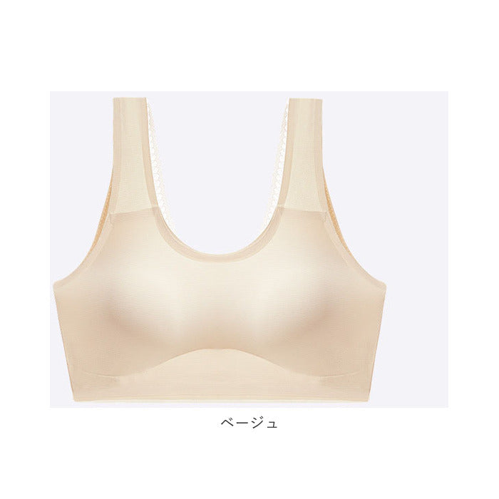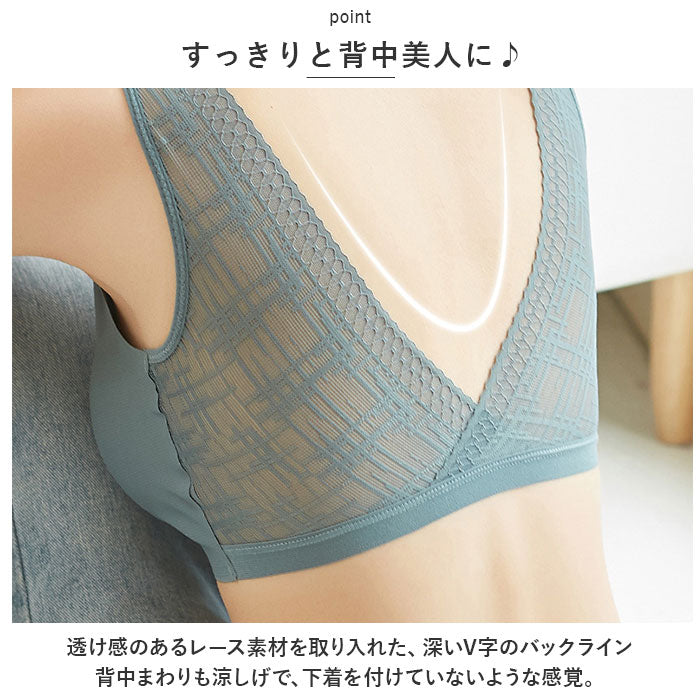後ろVレース ノンワイヤー 冷感 ブラ 背中開き pmybra9710