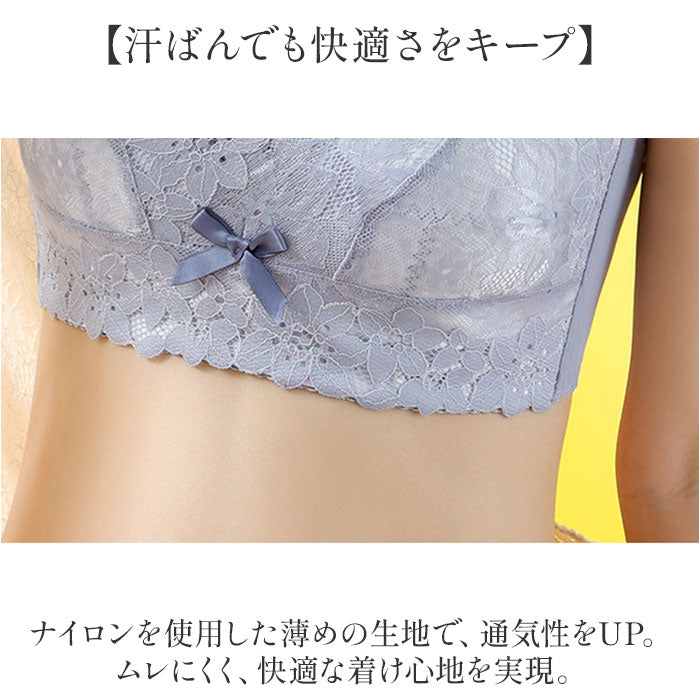 ・ふんわりバストを可愛く見せる、レースを使った上品デザインが嬉しいポイント。
