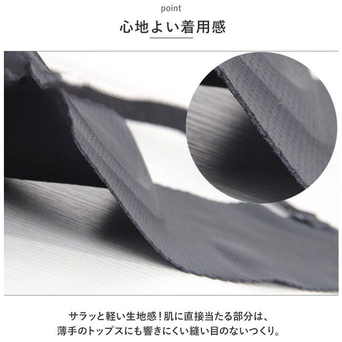・サラッと軽い生地感!肌に直接当たる部分は、薄手のトップスにも響きにくい縫い目のないつくり。