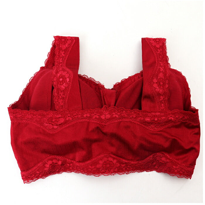 ・ショルダーやカップまわりは華やかなレース仕上げ。幅広なのでズレにくく、肩への負担を軽減。