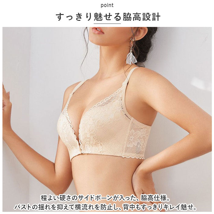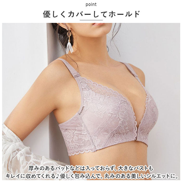 ブラジャー フロントホック 通販 ブラ 下着 肌着 ランジェリー インナー ノンワイヤー 着痩せ 小さく見せる 軽い 薄い 通気性 脇高 レース 背中見せ おしゃれ オシャレ ナイトブラ ウェア