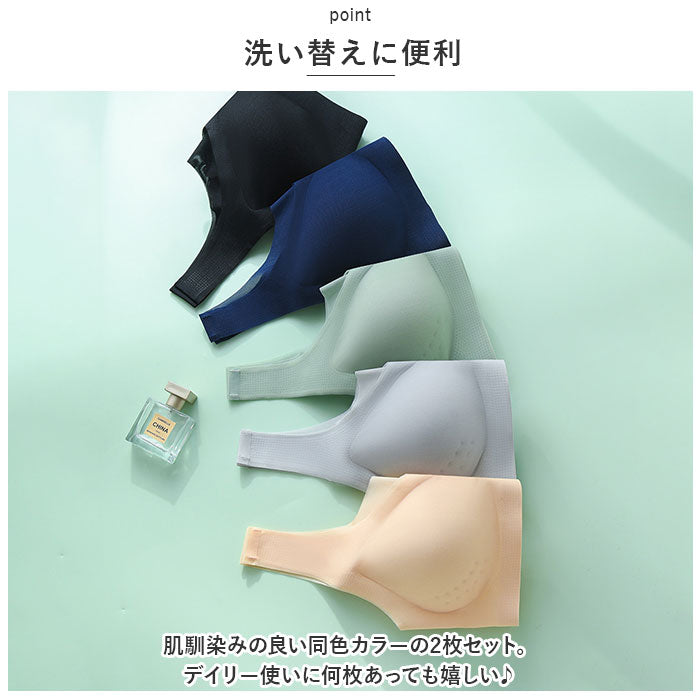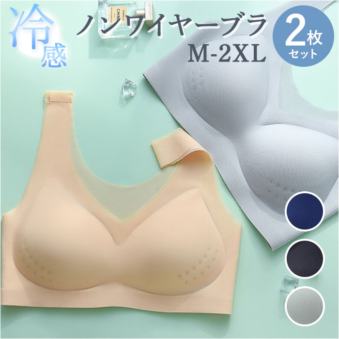 ブラジャー 通販 ノンワイヤーブラ ナイトブラ シームレス ブラ インナー 下着 肌着 ランジェリー ワイヤレスブラ スポーツブラ スポブラ 2枚セット セット 涼しい 冷感 夏 薄手 軽量