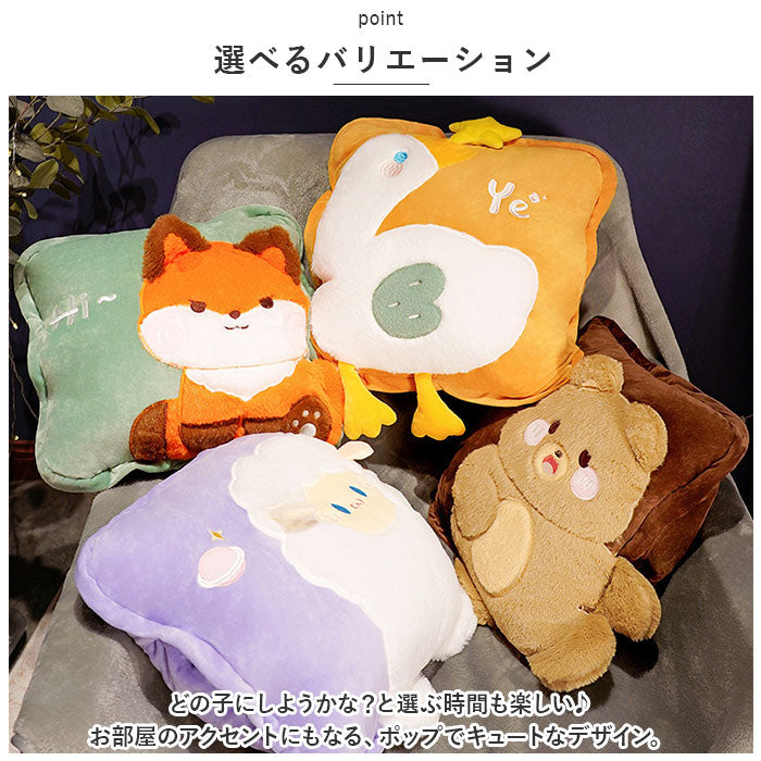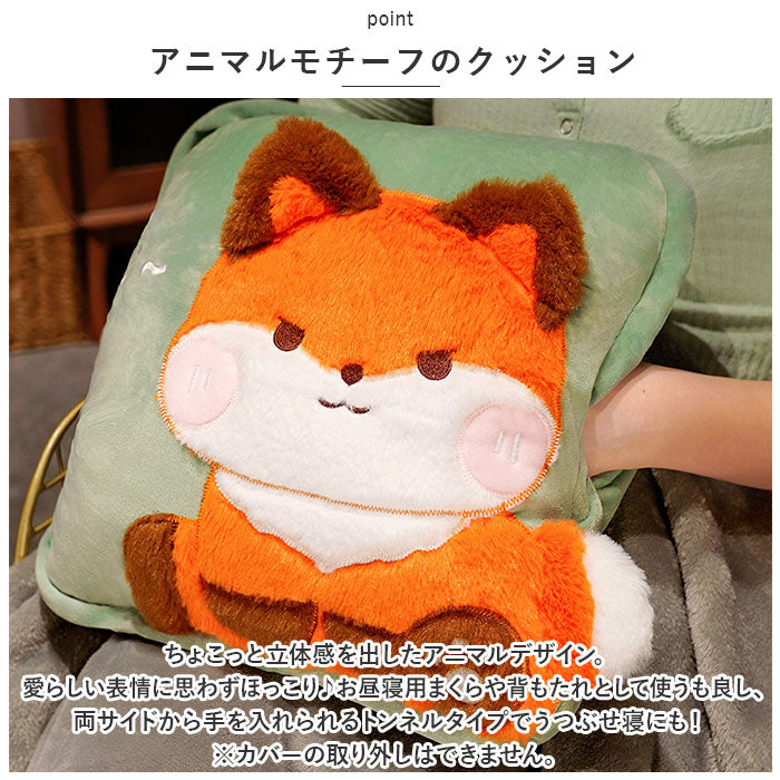 ブランケット 付き クッション 通販 トンネルクッション ひざ掛け ひざかけ お昼寝枕 お昼寝 毛布 アニマル 暖かい ふわふわ かわいい リラックス 動物 子ども ドライブ 車 こども