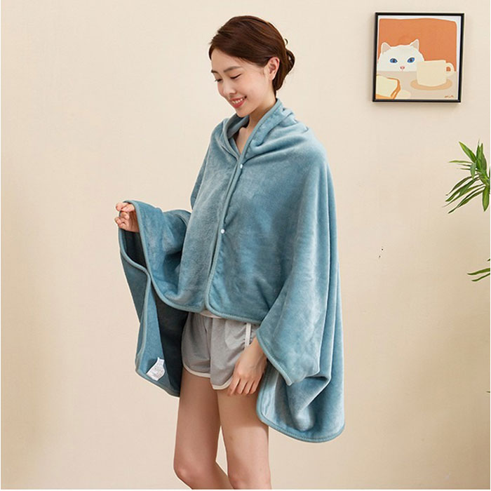 ・スナップボタンで留めれば膝掛け、肩掛け、ポンチョに変身する多機能タイプ◎