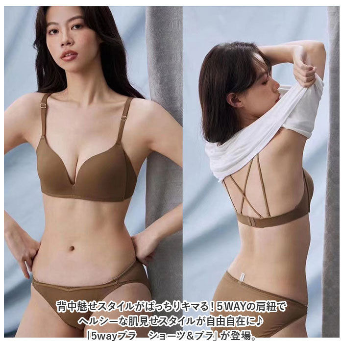 ・背中魅せスタイルがばっちりキマる!5WAYの肩紐でヘルシーな肌見せスタイルが自由自在に♪「5WAYブラ ショーツ&ブラ」が登場。