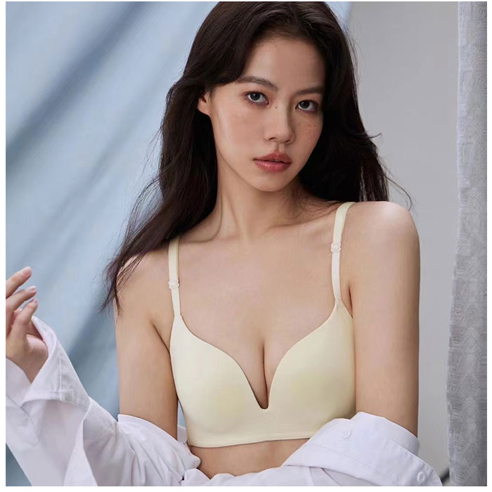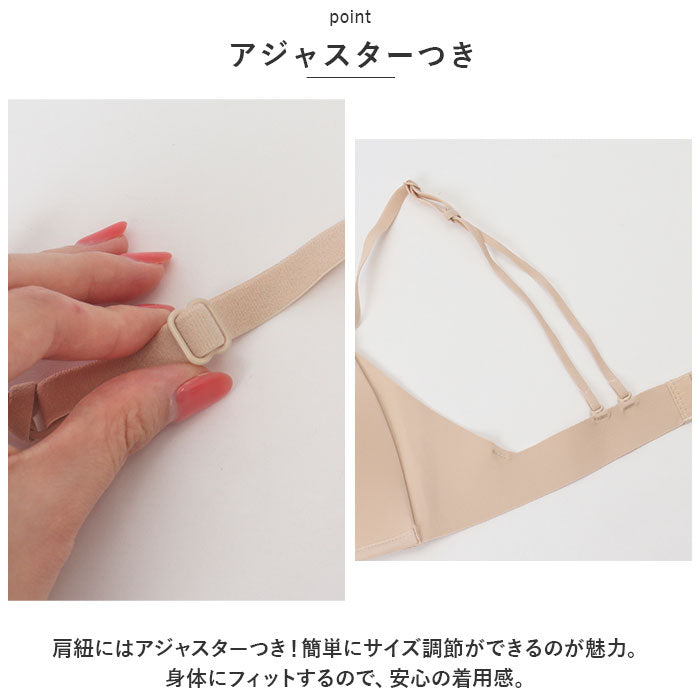 ・お洋服にひびきにくい無地のシンプルなブラ。薄着やTシャツでも気にせずに着用できるのも嬉しいポイント。