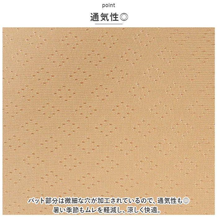 ・パッド部分は微細な穴が加工されているので、通気性も◎暑い季節もムレを軽減し、涼しく快適。