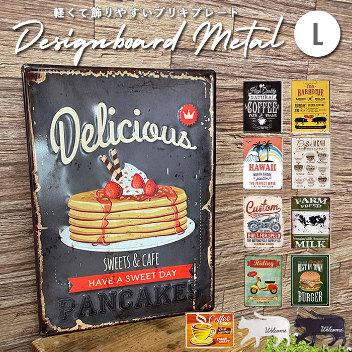 ブリキ看板 レトロ 通販 アンティーク調 スチール 壁掛け ボード プレート 看板 おしゃれ サインプレート カフェ風 デザインボードメタル L オーナメント ハンバーガー ハワイ 牛柄