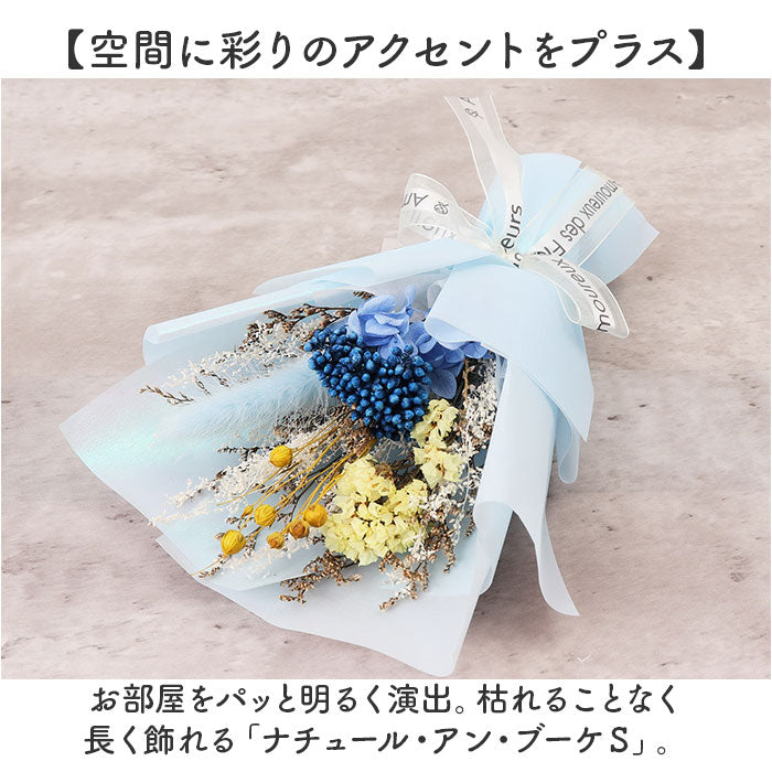 ・お部屋をパッと明るく演出。枯れることなく長く飾れる「ナチュール・アン・ブーケS」。