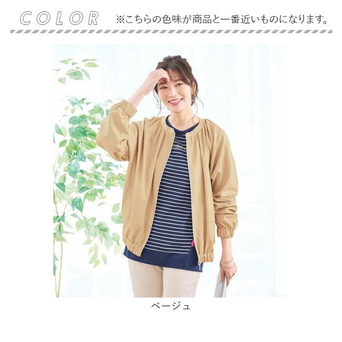 軽く羽織れるギャザー使いノーカラーブルゾン