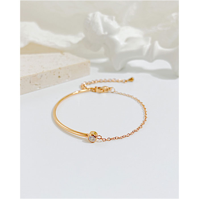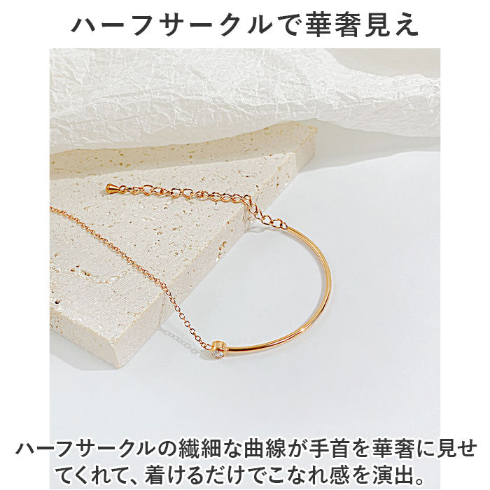 ・ハーフサークルの繊細な曲線が手首を華奢に見せてくれて、着けるだけでこなれ感を演出。