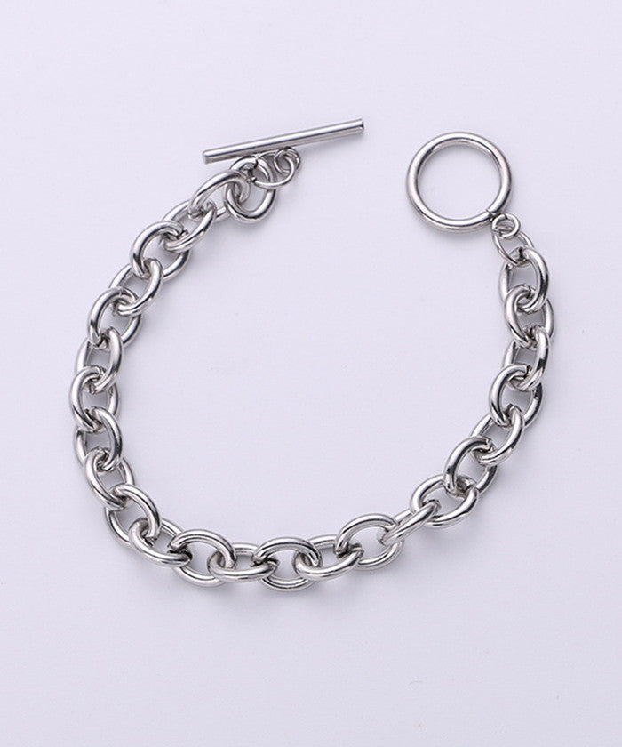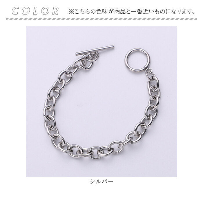 ・無骨な太めチェーンが存在感のあるシルバーブレスレット。