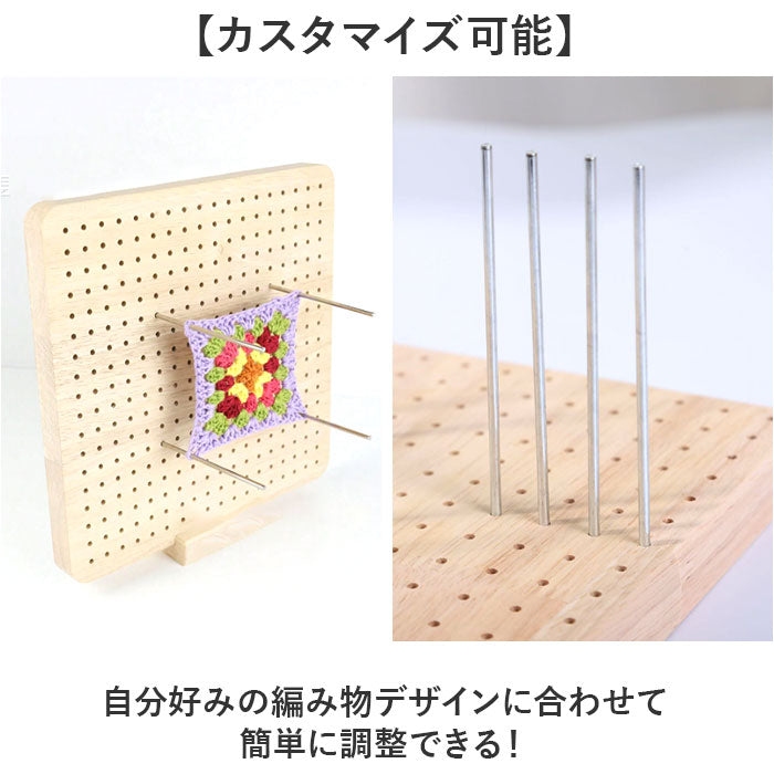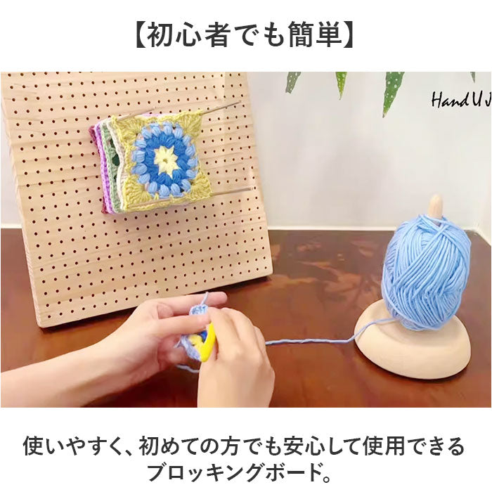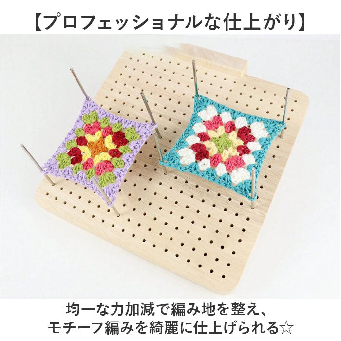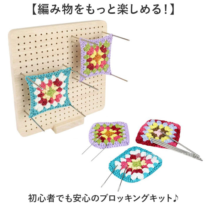ブロッキングボード かぎ編み 通販 ブロッキングマット 木製 ボード かぎ針編み かぎ針 編み物 モチーフ編み 手芸 グラニースクエア ラバーウッド ピン20本 ニードル5本 スタンド付き