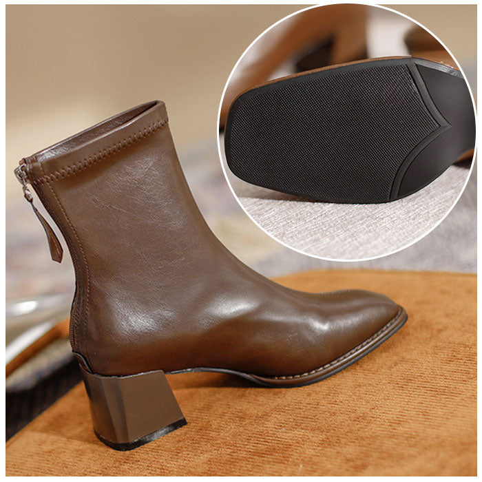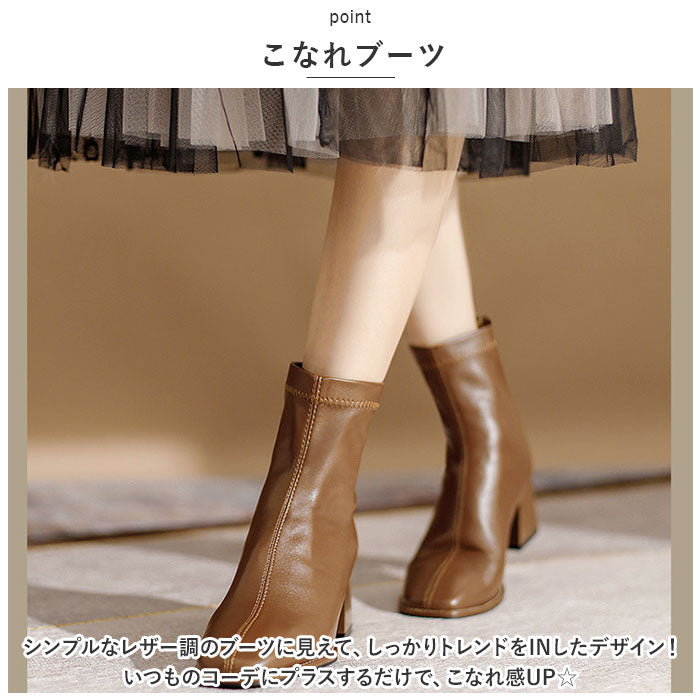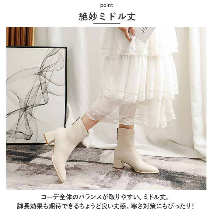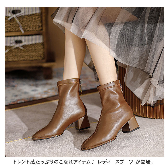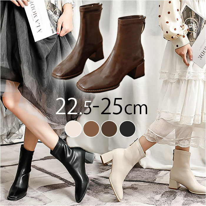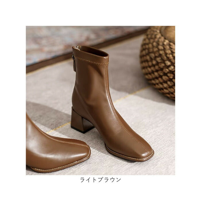 ブーツ レディース ショート 通販 靴 くつ クツ シューズ ヒール チャンキーヒール 5cm スクエアトゥ 歩きやすい きれいめ ストレッチ 伸縮性 軽量 滑りにくい 暖かい ファスナー