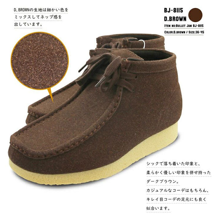 ブーツ レディース メンズ 通販 bullet jam BJ-8115 バレットジャム ショートブーツ デザートブーツ スウェード ミドルカットブーツ シューズ 靴 ブランド おしゃれ 冬 秋 ミッドカット