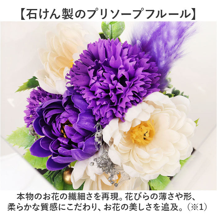 ・お供え向けのプリソープ&プリザーブドフラワーアレンジ。「ソメイユ・ペジーブル」。