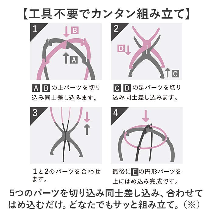 ・5つのパーツを切り込み同士差し込み、合わせてはめ込むだけ。どなたでもサッと組み立て。