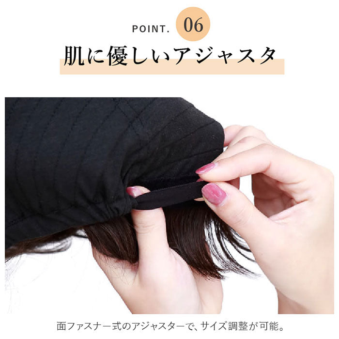 ・ウィッグの内側に帽子がついており、伸縮性が高く締めつけ感も少ないウィッグ。着脱がラクラク!