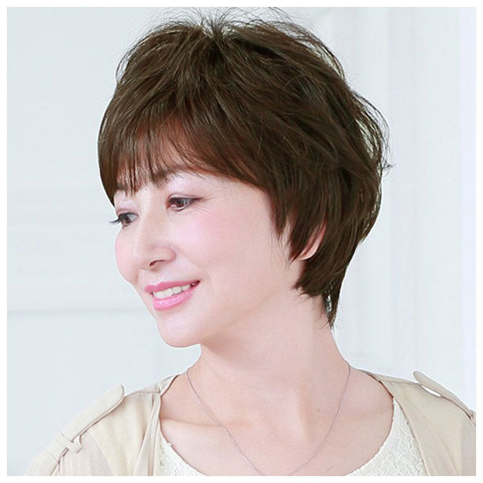 ・さらにツヤを軽減した人毛のような細さの耐熱ファイバーを使用した国内メーカー製なので、ウィッグに見えない自然なスタイルを演出。