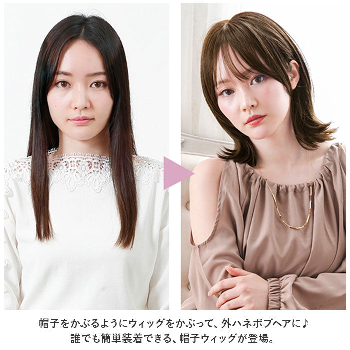 ・帽子をかぶるようにウィッグをかぶって、外ハネボブヘアに♪誰でも簡単装着できる、帽子ウィッグが登場。