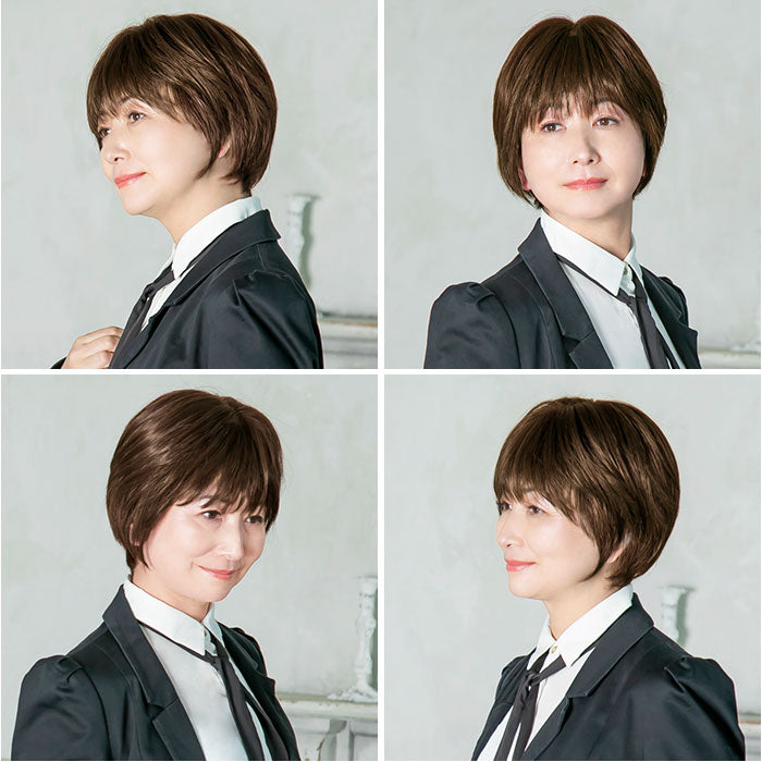 ・伸びかけの白髪や頭頂部を隠せる◎「プリシラ白髪かくしウィッグ 人毛100% ショート」。