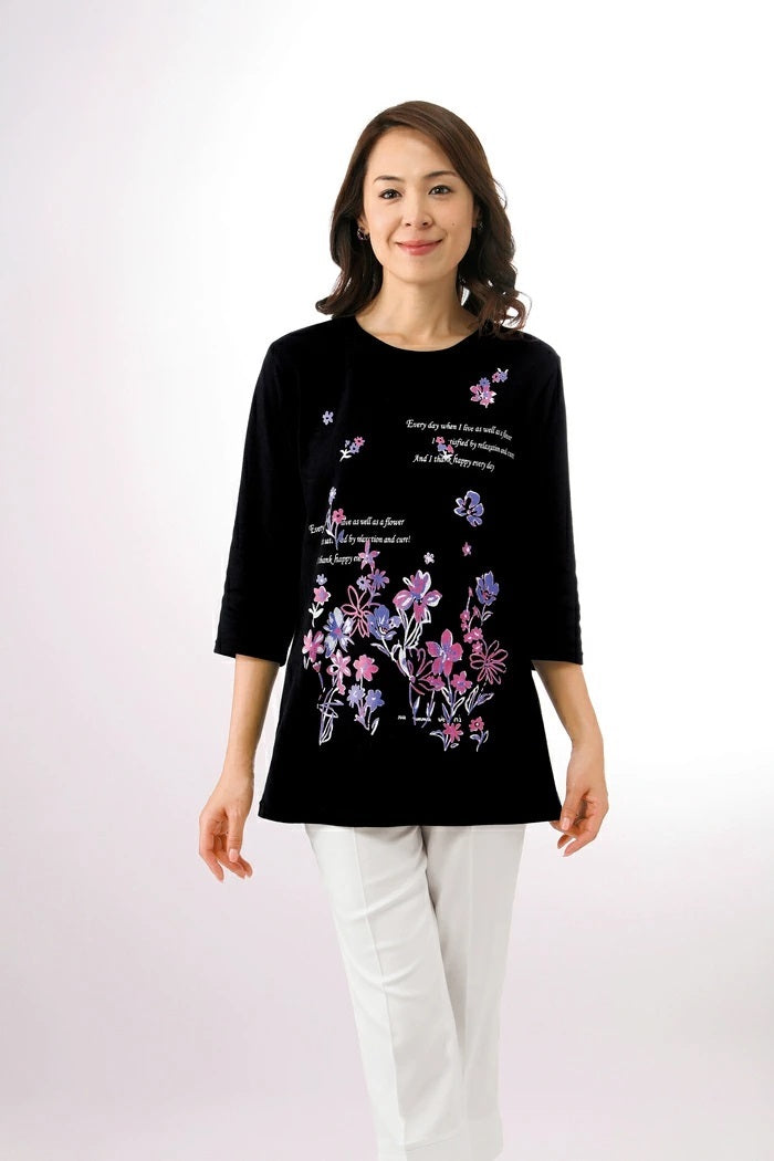 プリントTシャツ レディース 通販 7分袖Tシャツ レディースTシャツ 花柄 吸水速乾 女性 大人 カジュアル シンプル レディースプリントTシャツ トップス カットソー 快適 通気性