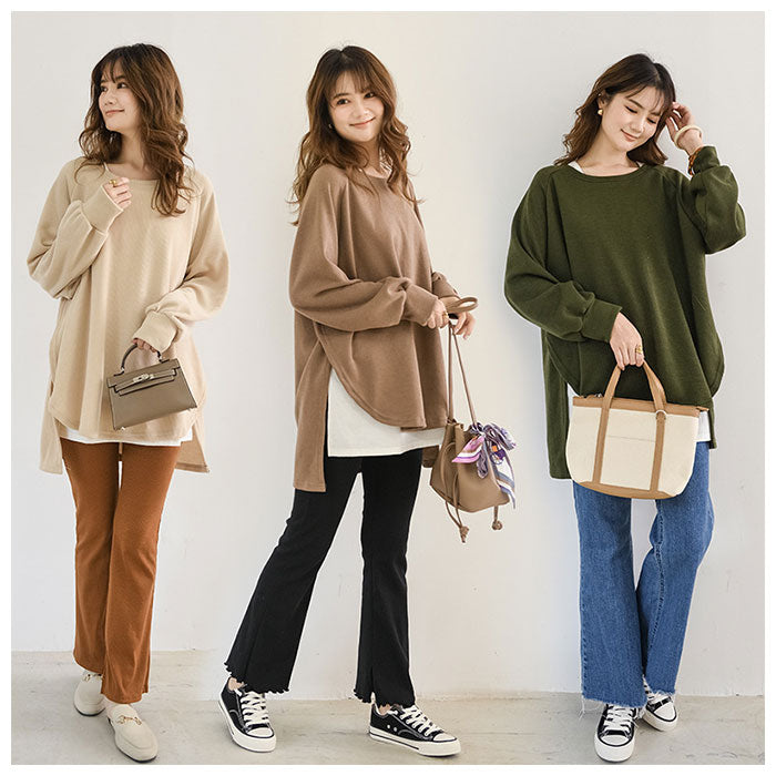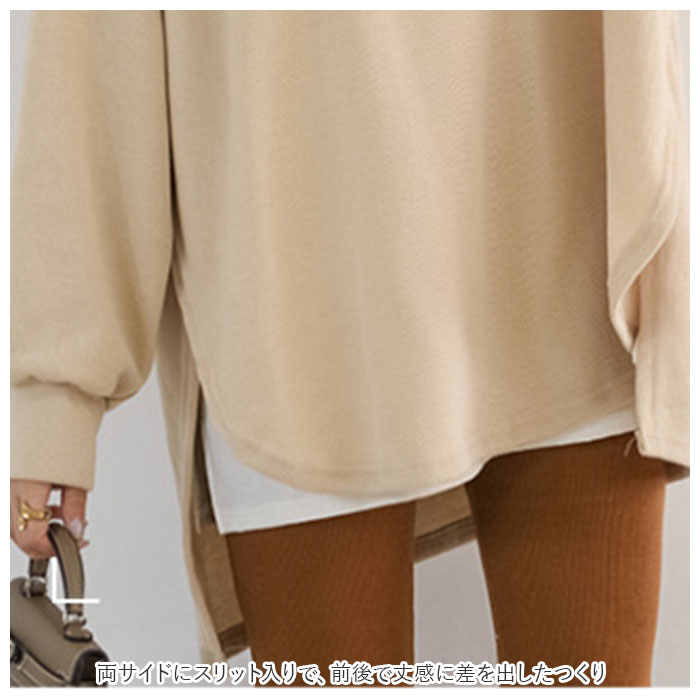 ・両サイドにスリット入りで、前後で丈感に差を出したつくり。長丈のインナートップスと合わせて、レイヤードコーデも楽しめちゃう!