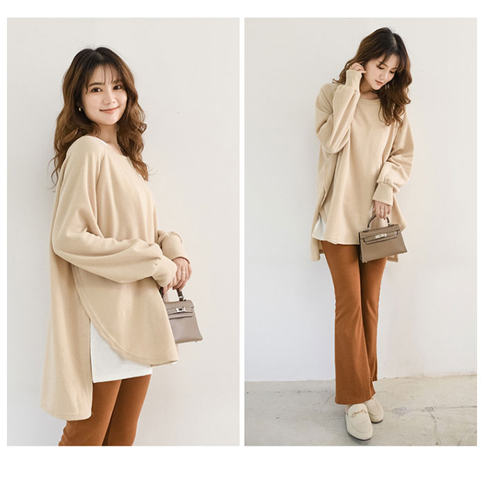 ・程よくルーズなシルエットが身体のラインをぼかし、気になるウエストやお尻、腕まわりをふんわりカバー♪