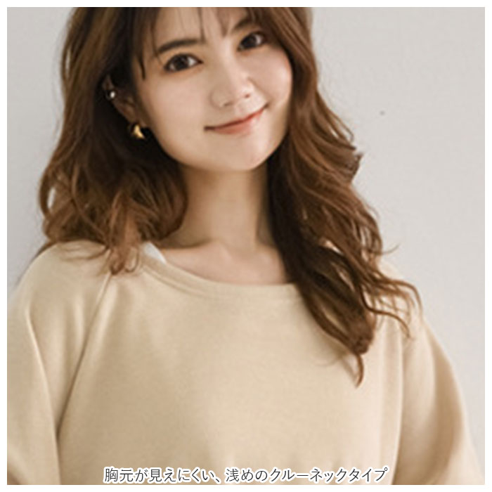 ・胸元が見えにくい、浅めのクルーネックタイプ。