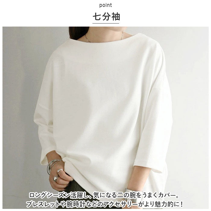 プルオーバー レディース 通販 シャツ カットソー 7分袖 インナー Tシャツ トップス ボートネック 通勤 通学 無地 シンプル カジュアル きれいめ おしゃれ 大人 可愛い 春 夏 秋